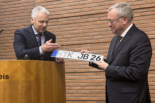 Es war ein Abschied, der zweierlei deutlich machte: die große Anerkennung für die geleistete Arbeit – und die persönliche Wertschätzung für den Menschen Johannes Baron. Landrat Michael Cyriax verabschiedete den Kreisbeigeordneten im Landratsamt und würdigte ihn auch in seiner Art. Verantwortung zu tragen und Zusammenarbeit zu prägen. Er sei „genau, verlässlich und vertrauensvoll im Team“ gewesen: So fasste der Landrat zusammen, was Baron seit 2014 als Dezernenten auszeichnete. Seine Amtszeit endet offiziell am 31. März; inhaltlich prägte er unter anderem die Felder Arbeit, Soziales und Verkehr. In der Feierstunde blickten neben Cyriax auch Regierungspräsident Professor Dr. Jan Hilligardt und der FDP-Fraktionsvorsitzende im Kreistag, Dirk Westedt, auf Stationen und Leistungen Barons zurück.