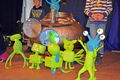 Schulkinderhaus Rathausstraße Hattersheim - Michael Piero Giordano: Szenische Gestaltung und Umsetzung von ETs aus Pappmaché und Bau eines Ufos aus Schwimmreifen, Baueimern und industriellen Versatzstücken.