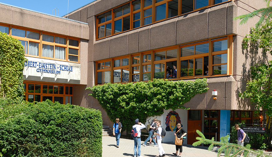 Haupteingang Albert-Einstein-Schule - staatlich Ober der Röth 165824 Schwalbach am Taunus Auf der Karte anzeigen Zur Detailseite